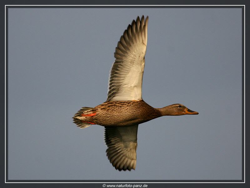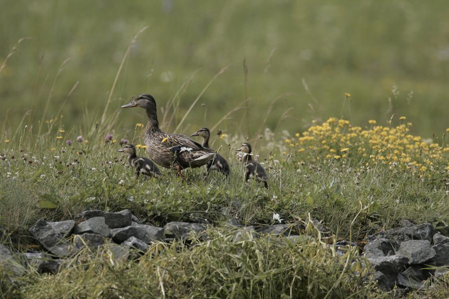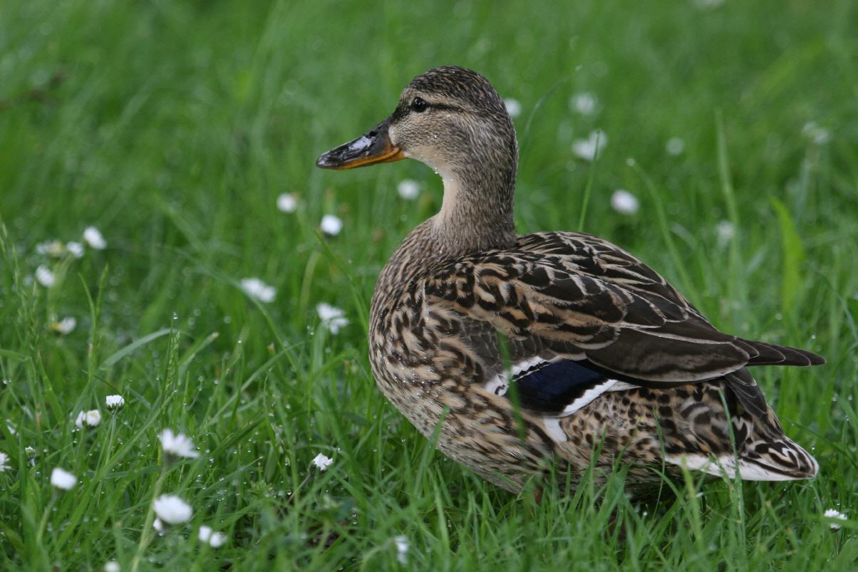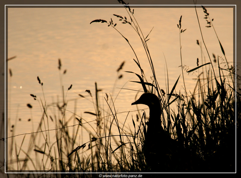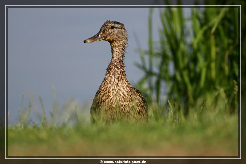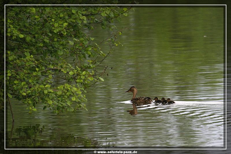 Häufigste Schwimmente. Prachtkleid des Männchens charakteristisch mit grünschillerndem Kopf und Hals, gelbem Schnabel, weißem Halsring, schokoladenbrauner Brust und metallisch blauem Flügelspiegel. Im Schlichtkleid außer dem grünlichgelben Schnabel weibchenfarben : gelblichbraunes Gefieder mit dunkelbraunen Flecken, Flügelspiegel gleich.