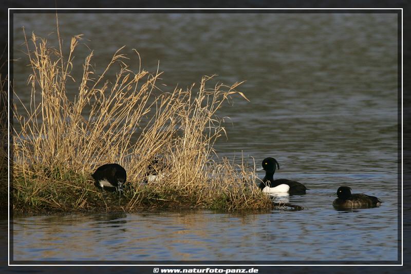 Teiche und Seen mit spärlicher Ufervegetation, überwintert in großen Trupps auf ausgedehnten Wasserflächen, in Häfen oder geschützten Buchten. Kommtauch auf städtischen eutrophierten Gewässern vor.