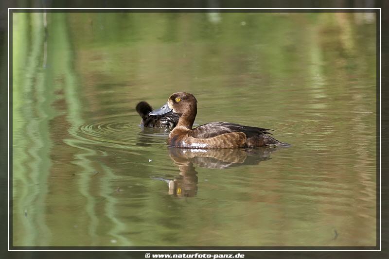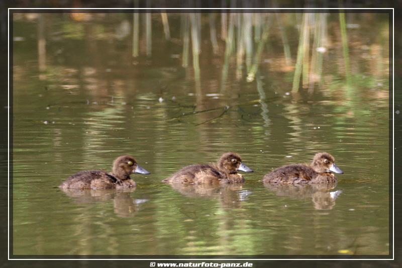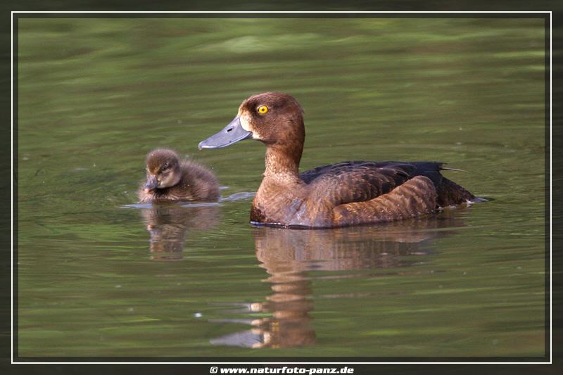 Baut in Gewässernähe Nest aus pflanzlichem Material, mit Nestdunen des Weibchens ausgekleidet. Legt von Mitte Mai-Juni 8-11 grünlichgraue Eier, 58 mm groß. Brutdauer 25 Tage, Jungvögel sind Nestflüchter und können mit 45-50 Tagen fliegen.